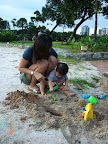 As usual, Mum's not working this week so we headed home for stay-over. Keep mentioning that we want to bring the kids to West Coast Park so finally we did. Ayden's such a clean freak that he refuse to go to the playground as he's afraid of getting himself dirty, in the end, just brought them to this corner to play with sand. After all the swimming in the morning and the sand play in the evening, we ended the night with a meal at the McDonald's located at the park. Ayden told me "Today is so much fun, I'm soooo happy!". He's happy, I'm happy so everybody's happy.