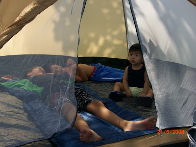 After Ayden's swimming class in the morning, we headed down to east coast park at around 1pm. Eric and Kelly went there earlier to find a good spot and set up the tent. Everyone enjoyed ourselves and we shall do it again, it's just so nice, to rest and relax at the beach, have some coffee or snack and play around. Family outing is just so much fun!!!! But of cos, if Kelly is not around, doubt that anyone will go down.